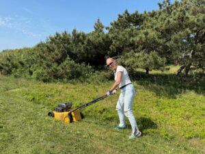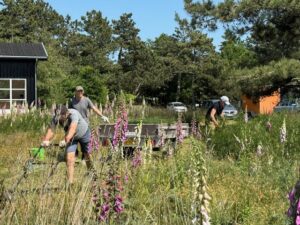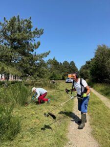 På generalforsamlingen blev det aftalt, at vi skal holde en fælles arbejdsdag om året, hvor vi sammen hjælpes ad med at vedligeholde vores fællesarealer og veje. Denne blev afholdt i skønt vejr 14. juni med dejlig stemning og fælles hygge. Vores Naturgruppe havde planlagt og prioriteret, hvad der skulle gøres. Fokus var på bekæmpelse af den inversive rynket rose og de meget aggressive gyvel på vores trekantsområde. Forhåbentlig bliver der nu plads til at Lyngen kan boltre sig. Vi fik også lige fikset så det forhåbentlig igen er muligt at køre på tværs af Nørrevang helt ned ved stranden med barnevogne og kørestole m.m..